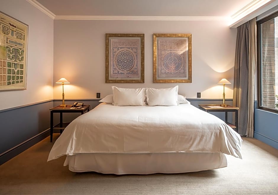 This deluxe suite features two separate marble interior private bathrooms, a spacious separate living room, a separate walk-in shower, a separate bathtub, and a separate toilet cubicle, free toiletries, a flat-screen TV with cable channels, a mini-bar, air conditioning and heating. Universal power sockets are available.